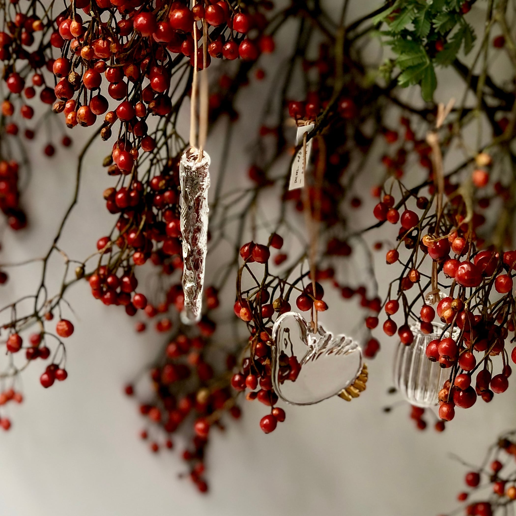 花瓶に入れた枝に吊るしたり
